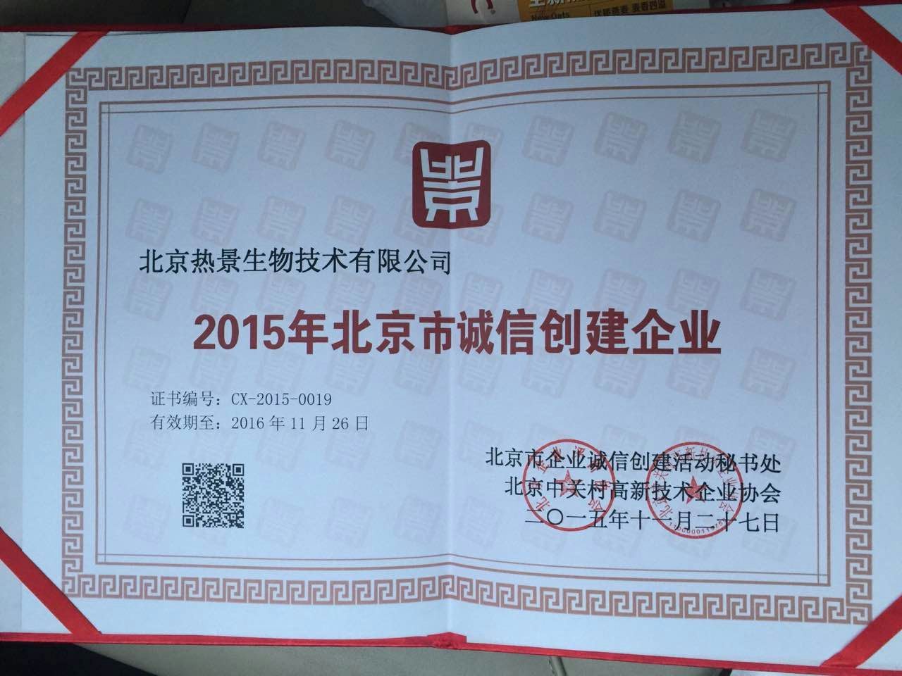 【榮譽(yù)】熱景生物榮獲2015年北京市誠信創(chuàng)建企業(yè)獎