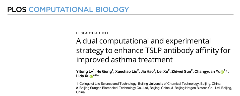 近日,熱景生物“X-Gen AI新藥發(fā)現(xiàn)與設(shè)計(jì)研究中心”在生物信息學(xué)與計(jì)算生物學(xué)領(lǐng)域高影響力經(jīng)典期刊PLOS Computational Biology上發(fā)表了題為“A Dual Computational and Experimental Strategy to Enhance TSLP Antibody Affinity for Improved Asthma Treatment” 的論文(doi: 10.1371/journal.pcbi.1011984)。“X-Gen AI新藥發(fā)現(xiàn)與設(shè)計(jì)研究中心”聯(lián)合培養(yǎng)博士生呂祎彤為論文第一作者,許立達(dá)研究員為論文主要通訊作者,北京化工大學(xué)喻長(zhǎng)遠(yuǎn)教授為共同通訊作者,舜景生物孫志偉總經(jīng)理為該套流程的搭建提供了極其重要的指導(dǎo)。
