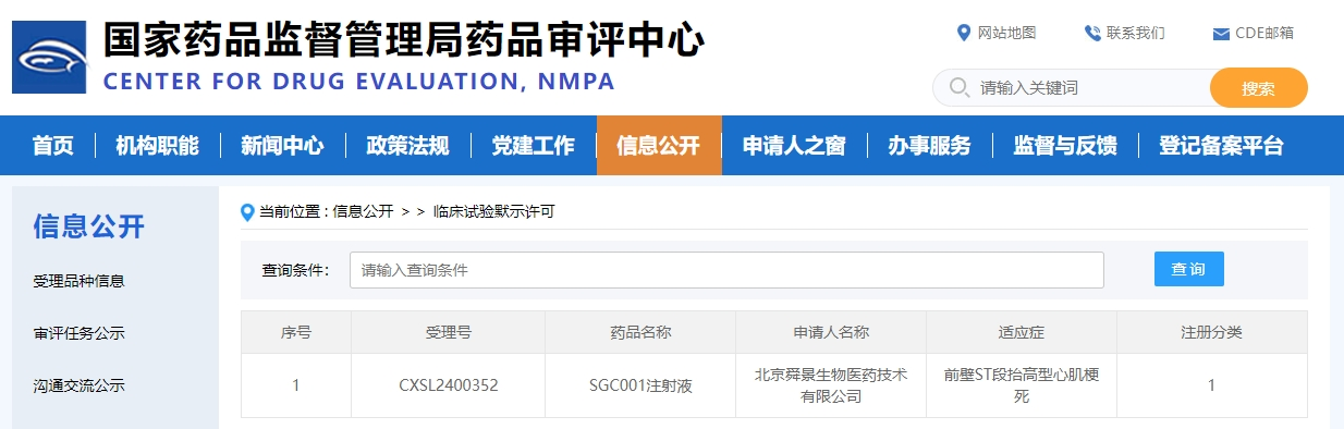 2024年08月05日,由熱景生物(SH.688068)孵化的創(chuàng)新藥公司北京舜景生物醫(yī)藥技術(shù)有限公司(以下簡(jiǎn)稱舜景醫(yī)藥)研制的全球首款創(chuàng)新藥SGC001注射液成功獲得國(guó)家藥品監(jiān)督管理局藥品審評(píng)中心臨床試驗(yàn)?zāi)驹S可。這是繼2024年05月22日該產(chǎn)品獲得美國(guó)FDA臨床試驗(yàn)(IND)許可之后又一里程碑事件。