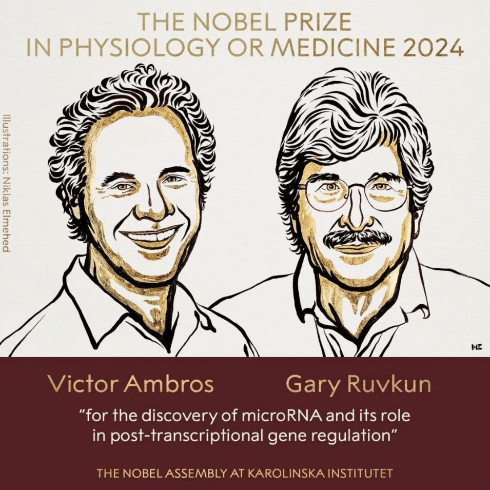 2024年諾貝爾生理學(xué)或醫(yī)學(xué)獎再次聚焦基因調(diào)控,將今年的諾貝爾生理學(xué)或醫(yī)學(xué)獎授予美國科學(xué)家 Victor Ambros 和 Gary Ruvkun,以表彰他們在發(fā)現(xiàn)微小 RNA(microRNAs、miRNAs)及其在基因調(diào)控中的作用方面做出的開創(chuàng)性貢獻(xiàn)。miRNAs作為調(diào)控基因表達(dá)的重要分子,在癌癥、神經(jīng)退行性疾病、心血管疾病等多種病理過程中發(fā)揮著關(guān)鍵作用。miRNAs已成為檢測疾病進(jìn)展的理想標(biāo)志物。