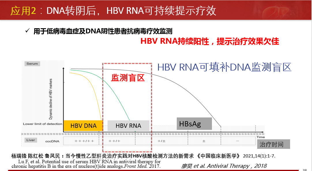 因而我們需要新型標(biāo)志物HBV RNA,在NA治療下患者血清HBV DNA檢測不到后,通過HBV RNA檢測反映cccDNA轉(zhuǎn)錄活性。