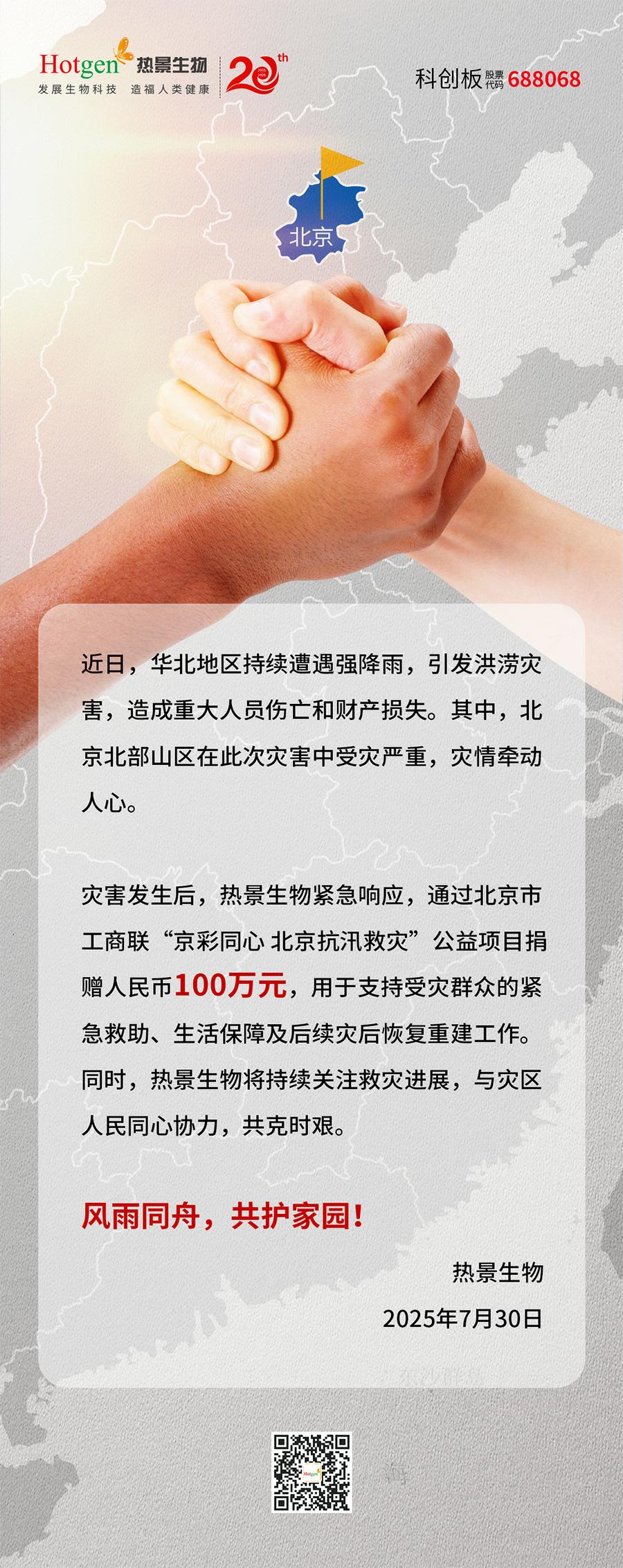 風(fēng)雨同舟|熱景生物捐贈(zèng)100萬元,馳援強(qiáng)降雨救災(zāi)工作
