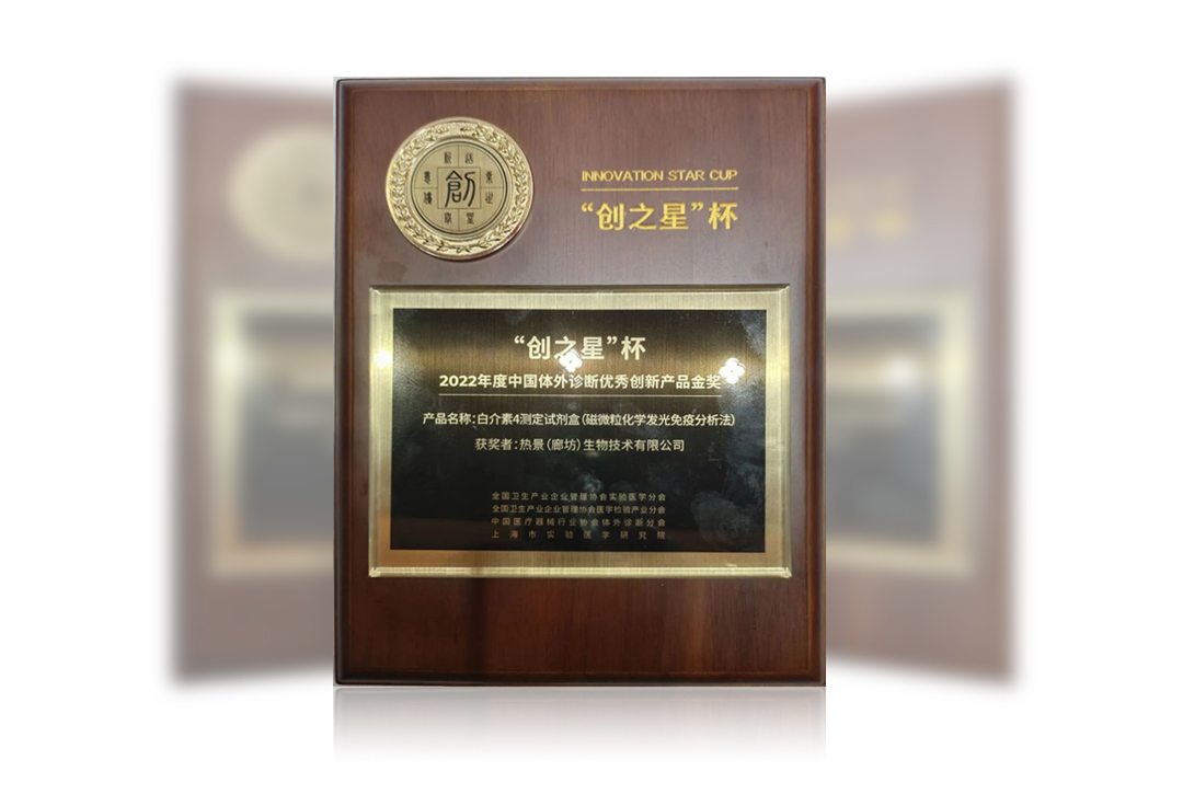 在5月27日“創(chuàng)之聲”第八屆中國實(shí)驗(yàn)醫(yī)學(xué)大會現(xiàn)場,熱景生物旗下熱景(廊坊)生物技術(shù)有限公司生產(chǎn)的專有特色細(xì)胞因子系列產(chǎn)品,榮獲2022年度“創(chuàng)之星”杯中國體外診斷優(yōu)秀創(chuàng)新產(chǎn)品金獎。