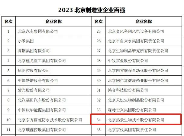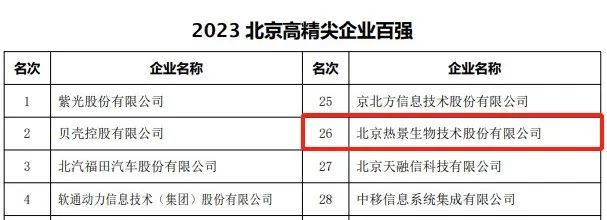 近日,北京企業(yè)聯(lián)合會、北京市企業(yè)家協(xié)會公布了2023北京企業(yè)百強名單,熱景生物榮登熱景生物榮登2023北京高精尖企業(yè)百強、2023北京制造業(yè)企業(yè)百強、2023北京服務業(yè)企業(yè)百強三大榜單!三大榜單!
